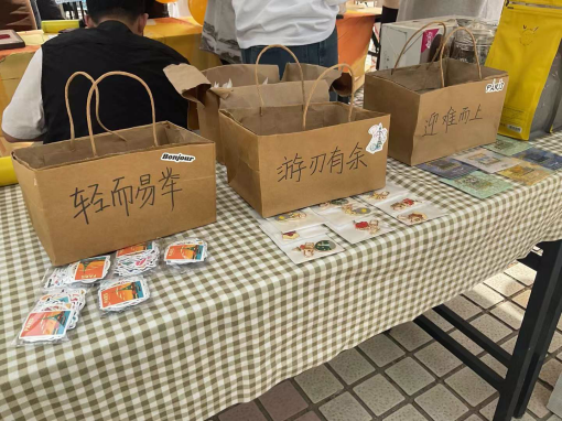 在展板和美食满足师生们的好奇心和味蕾之后,还有令人激动的游戏互动环节。师生们抽取由易到难的法国知识问答纸条,以此来检验自己对法国文化的了解程度。不仅如此,根据回答问题的数量,参与者们还会收到贴纸、小王子钥匙扣、法国油画书签等小礼品。因此,游戏区前人头攒动、络绎不绝,师生们兴致勃勃、摩拳擦掌,仿佛置身于一个五彩斑斓的世界,在兴奋快乐的情绪中加深了对法国文化的了解。