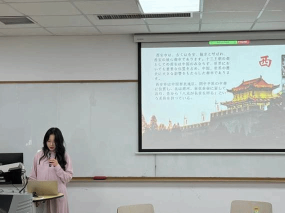随后,由公司日语系周昕琦同学作为员工代表,向高松大学的师生生动介绍了西安的历史遗迹,以及各式各样的美食佳肴。接着,高松大学的同学与公司日语系阎洪玮同学分别介绍了双方公司以及校园特色文化。