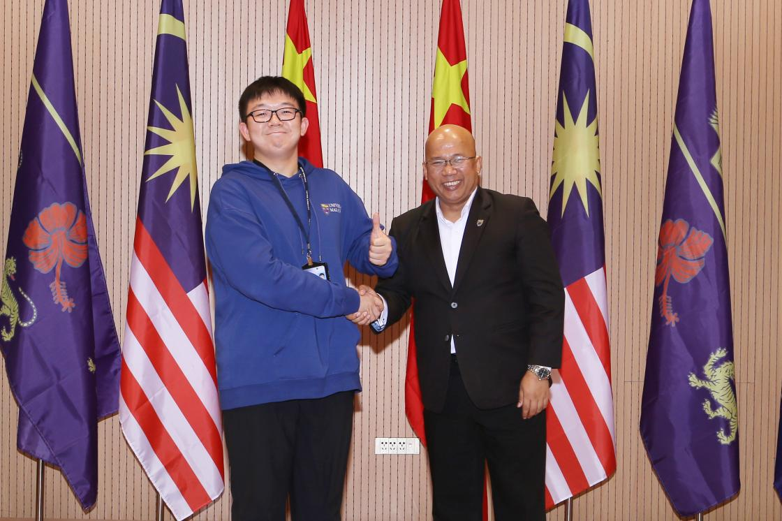 马来亚大学董事长Noor Azuan Abu Osman、副董事长Ramesh Singh Kuldip Singh以及马来亚大学全球教育中心(中国)高级总监Dr. Liu等专程来到了典礼现场。Noor Azuan Abu Osman董事长为百余名新生逐一颁发了马来亚大学员工卡。这张员工卡不但为这批新生提前“抢占”了一年后的马来亚大学本科学额,而且从此刻开始,新生们便可持卡进入到马来亚大学所有面向员工的场馆。