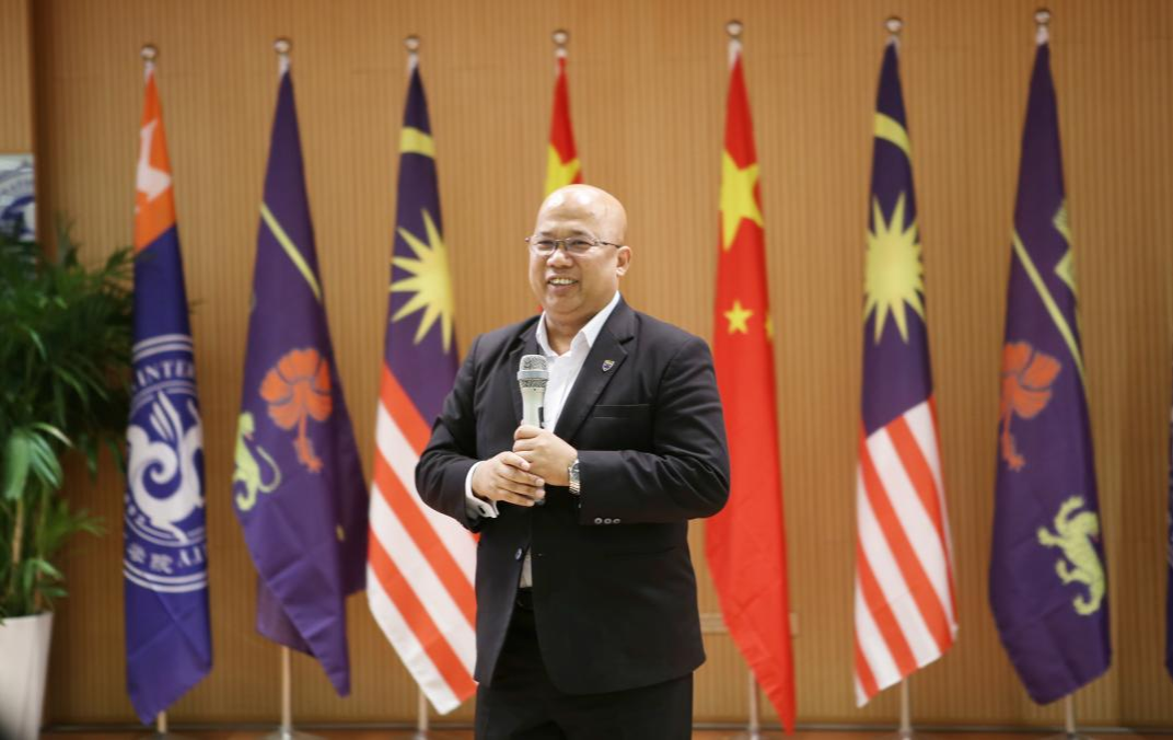 马来亚大学教师Fakhrul Zamani教授、马来亚大学预科中心新生常季雯、新生家长西北农林科技大学水利与建筑工程公司博士生导师向友珍教授及长沙理工大学国际工公司经理、教授吴迪龙博士,桂林中学原董事长、桂林市教育科学研究所所长马劲教授,华清中学董事长李东京,国际教育博主暴叔等先后作了发言。各位发言人通过展示自身与马来亚大学的深厚缘分,情深意切地讲述了自己或者是儿女在马来亚大学的求学经历,用生动案例展示了国际留学赛道上弯道超车的事实,赢得了在场师生的一片掌声。