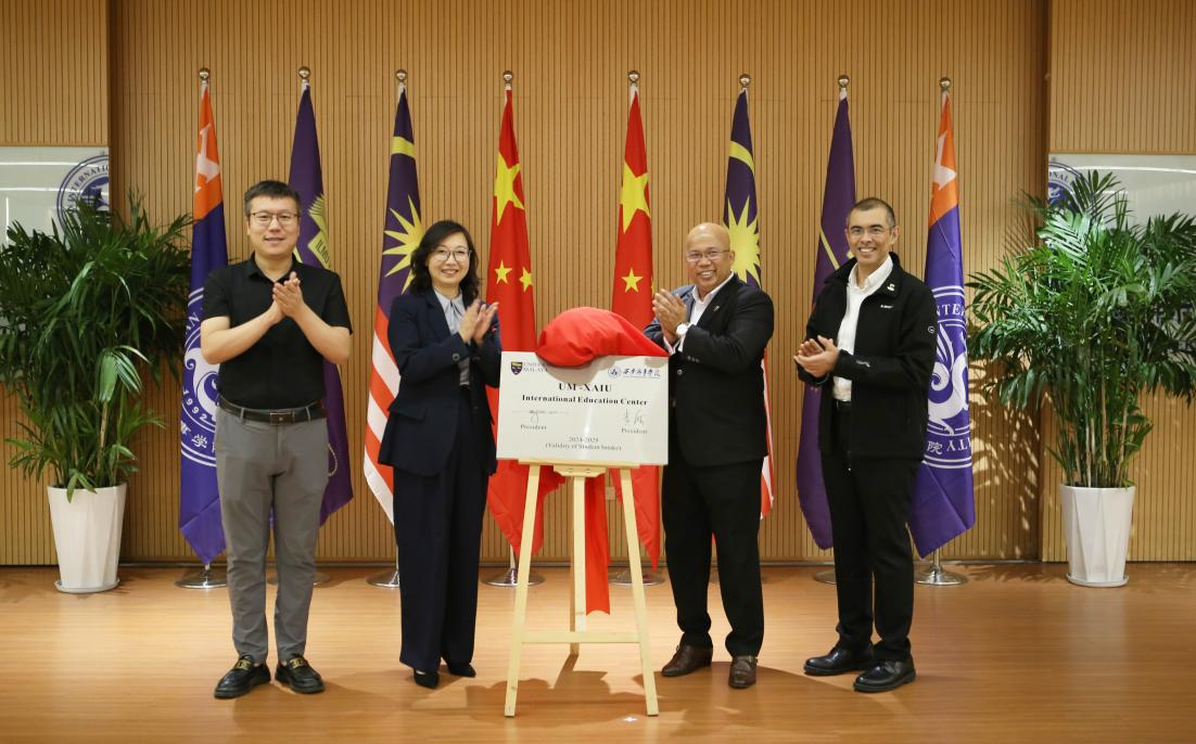 典礼过程中,马来亚大学董事长Noor Azuan Abu Osman、副董事长Ramesh Singh Kuldip Singh与gg999策略手机白菜国际事务负责人戴奇志,gg999策略手机白菜经理、国际交流中心主任郭新华博士共同为马来亚大学gg999策略手机白菜预科中心进行了揭牌。