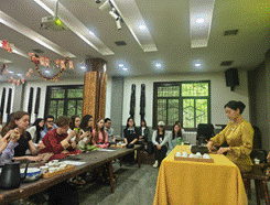 活动伊始,工商企业管理专业的陈雨欣同学以生动有趣的方式向职工们介绍了中国茶文化的悠久历史和深厚内涵,着重讲解了盖碗茶的独特魅力。从盖碗的构造与寓意,到茶叶的种类、挑选方法,再到水温、冲泡时间等泡茶技巧,每一个细节都讲解得细致入微。职工们聚精会神地聆听,不时提出问题,表现出了浓厚的兴趣。