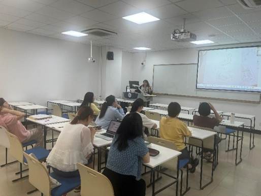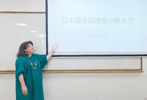 紧接着,第二场研讨会在7月4日进行,此次会议由范雯婷老师主持,她首先向参与者明确了研讨会的主要议题——探讨日语会话课程的教学方法。星野老师继而对日本现行的会话课程教学方式进行了全面的讲解。她分享了日本的教学经验,与公司教师就如何改进会话课程的教学方法进行了富有成效的讨论。这一互动环节极大地促进了教师间的交流,为大家提供了一个相互学习和探讨教学资源的平台。